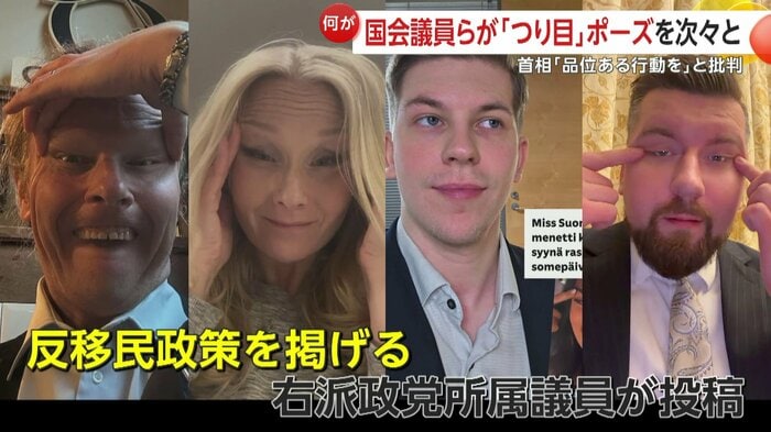 今度はフィンランドの国会議員らが、“つり目ポーズ”の写真や動画を次々とアップした。