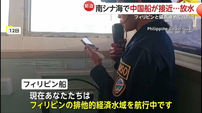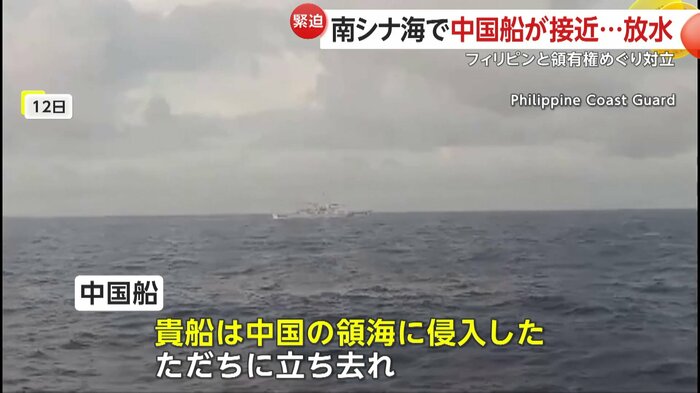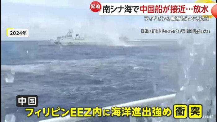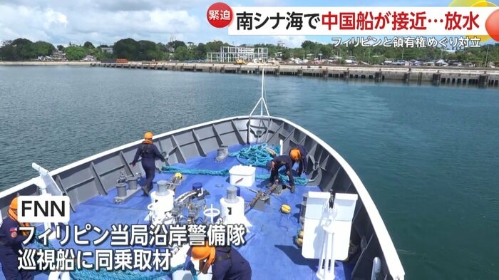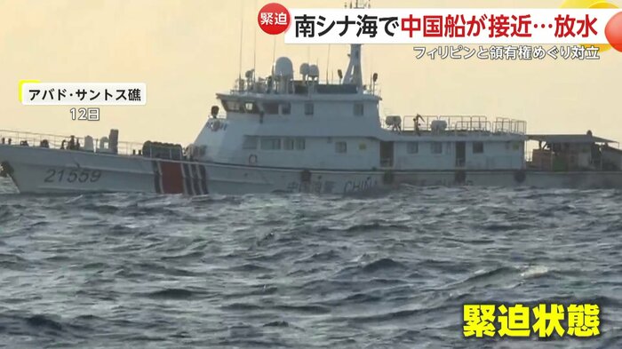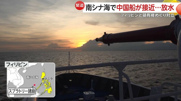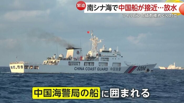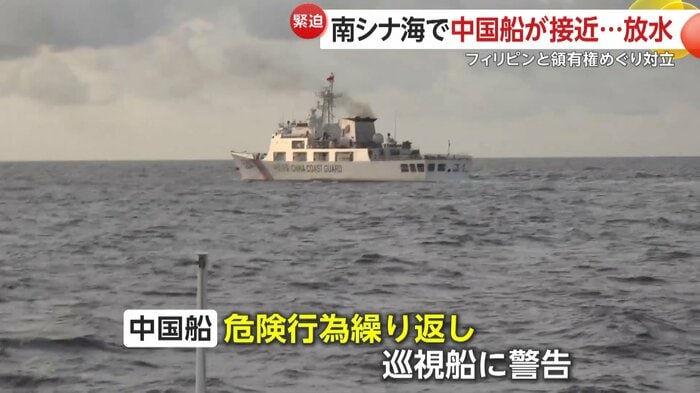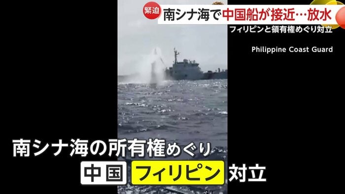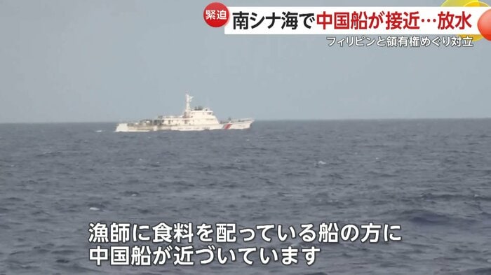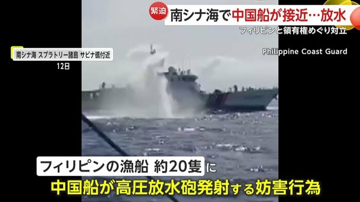 フィリピンの漁船約20隻に中国船が高圧の放水砲を発射する妨害行為が発生。