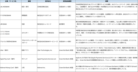 近年、BaaSを活用した非金融事業者による決済サービスの提供が、アパレル・小売、モビリティ、通信、ITなど幅広い業界で増加しています。事業者は、口座、決済、融資、送金といった金融機能を、自社サービスの中に直接統合できる点が大きな特徴です。以下に航空・旅行、小売、モビリティ、プロスポーツ、ITなど多岐にわたる業界における代表的な事例を取り上げました。表には、各社が提携する金融機関とともに、どのようなサービスを構築しているかを整理しています。
