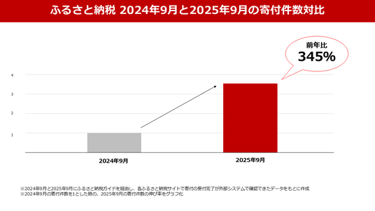 2025年は9月末のポイント廃止に伴い、駆け込み需要が発生した結果、月間の寄付申込件数は前年同月比3.45倍と大幅に増加しました。