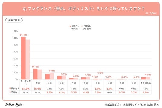 【質問:フレグランス(香水、ボディミスト)をいくつ持っていますか?】