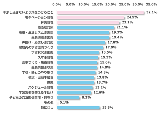 受験生を支える保護者の最大の負担は「干渉し過ぎないよう気をつけること(32.1%)」