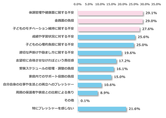 ・受験期に親が抱えるプレッシャー、子どもの成績より体調管理や金銭面の不安が上回る
