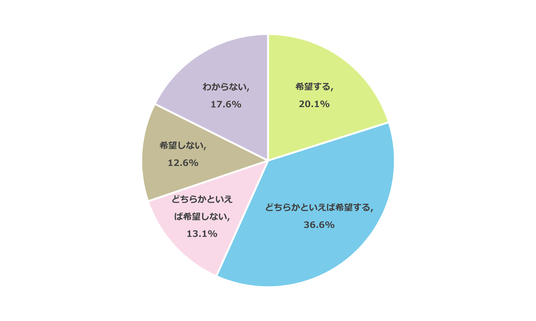 公立高校を志望する中学3年生の保護者732名に、デジタル併願制の導入について調査したところ、56.7%が「希望する」(希望する:20.1%、どちらかといえば希望する:36.6%)と回答しました。