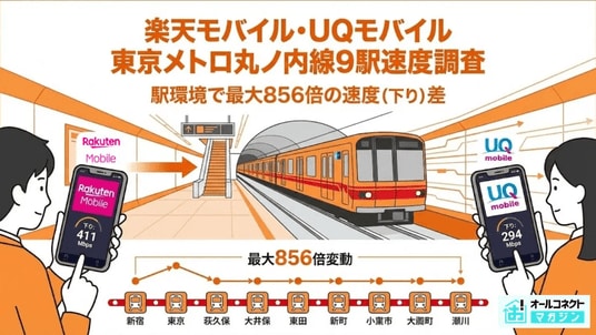 通信インフラ事業と地域振興事業を手掛ける株式会社ALL CONNECT(代表取締役社長:岩井宏太・本社:福井県福井市)が運営する通信メディア「オールコネクトマガジン( https://all-connect.co.jp/magazine/ )」は、東京メトロ丸ノ内線の主要9駅にて格安SIM(楽天モバイル・UQmobile)の通信速度実態調査を実施しました。
