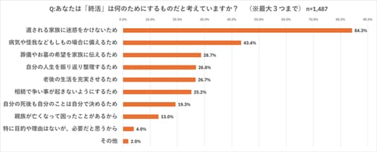 3.「終活」理由は「遺される家族に迷惑をかけないため」が約84%で最多