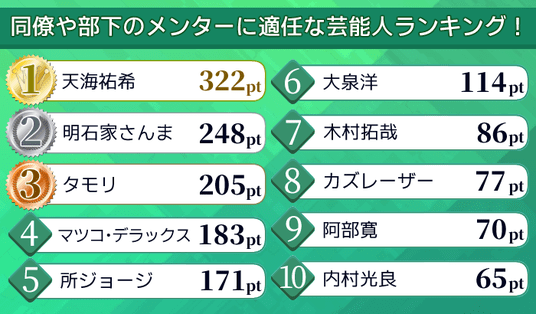 今回の調査では、同僚や部下の悩みを聞くメンターとして「この人ならなんでも相談できそう」と思われている芸能人は誰なのかを調査。
