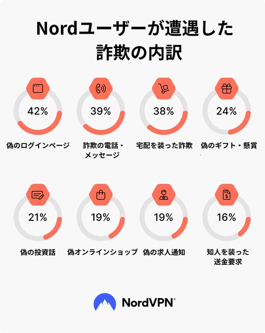 ※本文中に記載しているブランド名は、模倣被害が多かった傾向を正確に伝えるためのもので、NordVPNはいずれのブランド所有者とも関係していません。