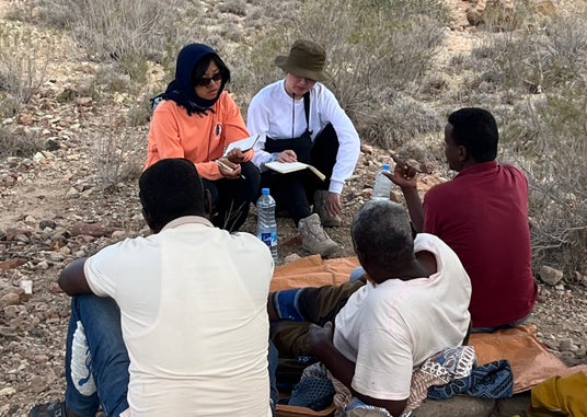 バイオ炭の実装は、国内にとどまらず国際研究へも展開されました。ジブチ共和国では、侵略的外来種であるメスキートを炭化し、土壌改良に活用する可能性を検討しました。あわせて、気候変動の影響により脆弱化する遊牧民の生計や定住化の可能性への影響を分析しました。これらの成果は、学生が国際開発学会においてポスター発表を行っています。