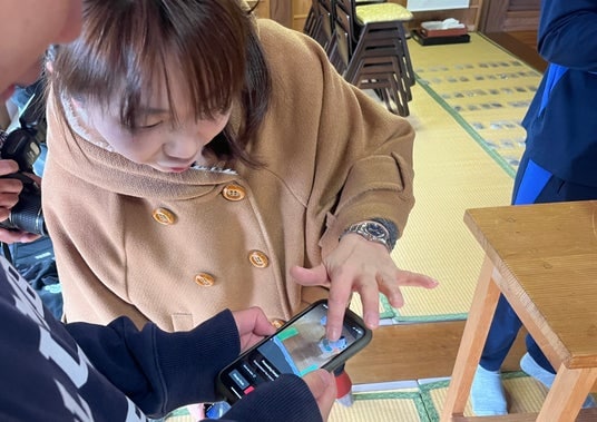 本取り組みの研究上の特徴は、約530基という網羅的な対象を、スマートフォン技術を用いて記録した点にあります。位置情報と3Dモデルを紐づけて公開する手法は、高齢化や過疎化により維持が困難になりつつある文化財を、「保存」と「生活の中での活用」の両立という観点から再定義する試みとして位置づけられています。なお、3Dモデリングについては、日本ミクニヤ株式会社の齋藤めぐみ氏が技術面でサポートしました。これらの成果はいわみ文化振興センターにおいて展示会として公開されました。さらに、2024年1月13日には、浜田市熱田町・福恩寺にて3Dスキャン体験イベントを実施し、浜田商業高校の学生とともに文化財記録の体験を共有しました。