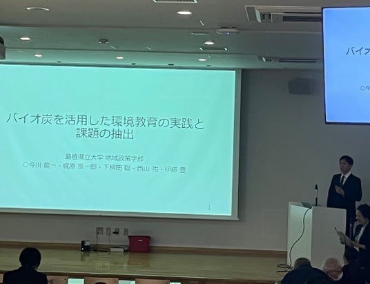 一方、国内では、研究成果を次世代へと接続する教育実装にも取り組みました。大田市大森小学校・おおもり児童クラブ渡辺家の協力のもと、放置竹林の竹を活用した製炭、学校所有の畑へのバイオ炭施用、CO2削減量の可視化(表彰状)までを含む、一連の環境教育プログラムを設計・実施しました。児童は、地域の放置竹林の竹を原料にバイオ炭を製造し、自らの学校の畑に施用する過程を通じて、炭素循環、地域資源の活用、環境と暮らしの関係について学びました。本取り組みは、研究知見を教育現場へと翻訳した実践事例として整理され、日本炭化学会で報告されています。