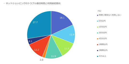 - トラブル発生後3時間経過で約7割が利用を中止する一方、3時間で解決できているケースは約1割