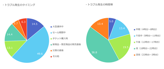 - トラブル発生のタイミングは「セール期間中」が最多、時間帯別では18時~22時が約4割