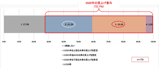 ●さらに、「2025年を下回る水準」を含めると、2026年の賃上げ意向は7割を超える