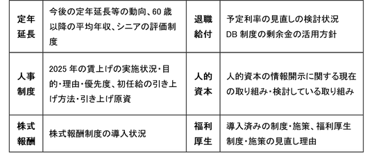2025年は退職給付制度、人事制度、人的資本情報開示、福利厚生関連制度、株式報酬制度などを