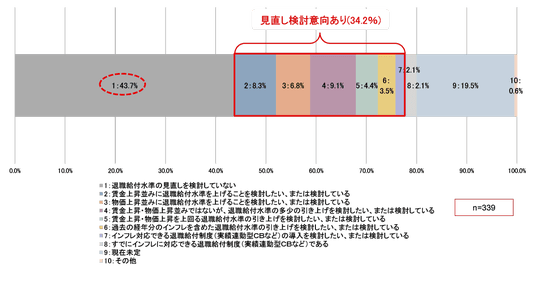 ●退職給付水準の見直し意向がある企業は30%以上であり、賃上げ・初任給引上げ意向も引き続き