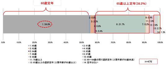 ●一方、「65歳以上定年(選択定年および定年なしも含む)」が38.2%