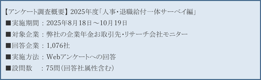 三菱UFJ信託銀行株式会社(取締役社長:窪田 博)はこの度、弊社ホームページで「2025年度人事・退職給付一体サーベイ」の調査結果を公表しました。