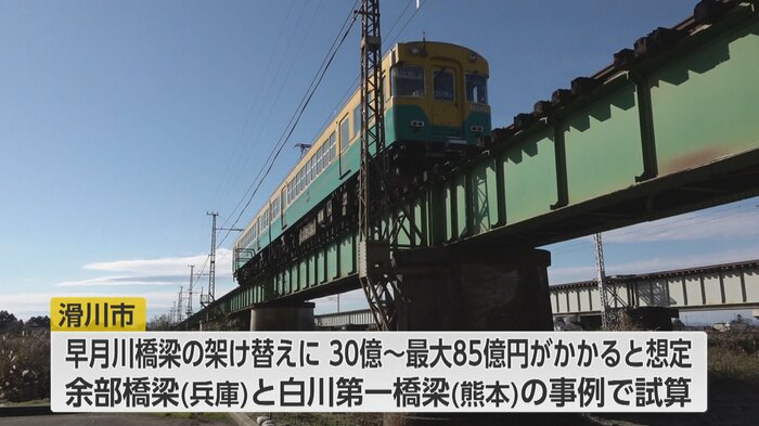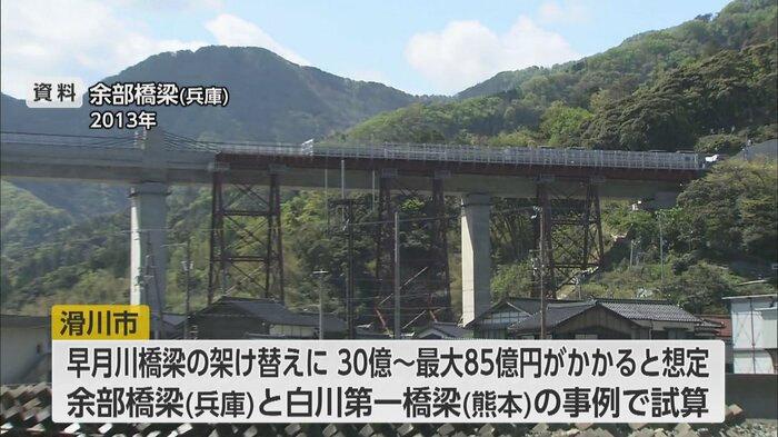また、老朽化した早月川の橋の架け替えに、市は最大85億円がかかると試算。この根拠となったのが、熊本県や兵庫県で架け替えられた橋の事例だ。
