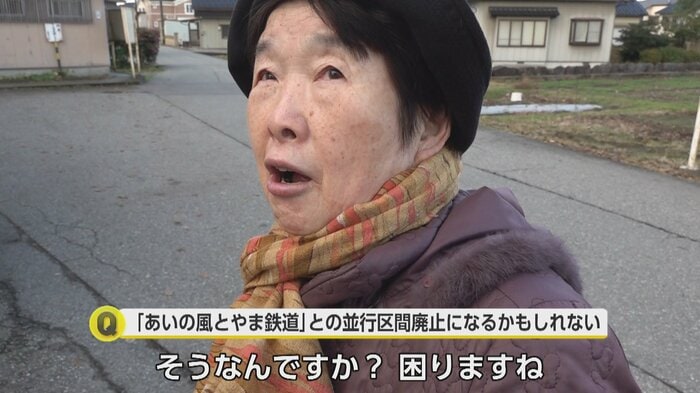 「困りますね。新魚津の医者に行くが(廃止なら)バスしかない。歩いていくとしてもどこを歩けばいいか、医者までは行けませんね」と80代の女性は話す。