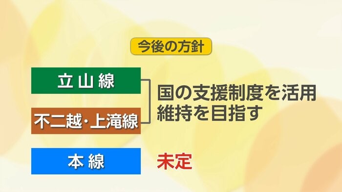 深刻な経営不振に陥っている富山地方鉄道。特に本線の「滑川―宇奈月温泉」間について、地鉄は沿線自治体からの支援や方針が示されなければ年内で廃線手続きに入ると表明していた。先月29日の本線分科会で、県と沿線自治体は来年度はひとまず運行費用を支援することを決め、廃線の判断は「先送り」となったが、根本的な解決には至っていない。