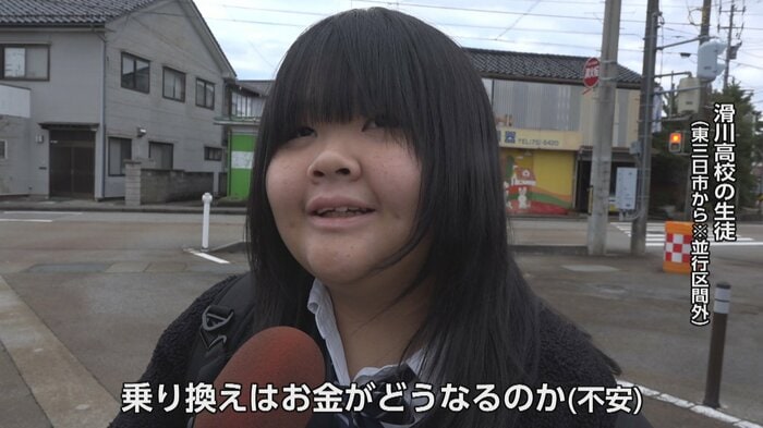 「乗り換えはお金がどうなるのか(不安)。家族は『地鉄がちゃんと残ったら良いよねと、あいの風だと大変だよね』と言っている」と滑川高校の生徒は不安を語る。別の生徒も「(廃止なら今より)30分前には出ないと。卒業するまでは走ってほしい」と訴える。