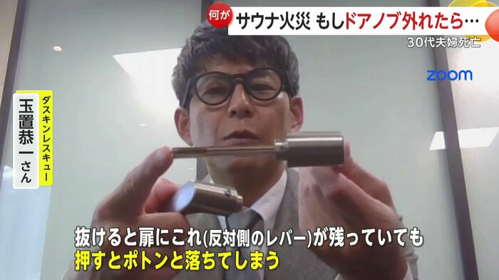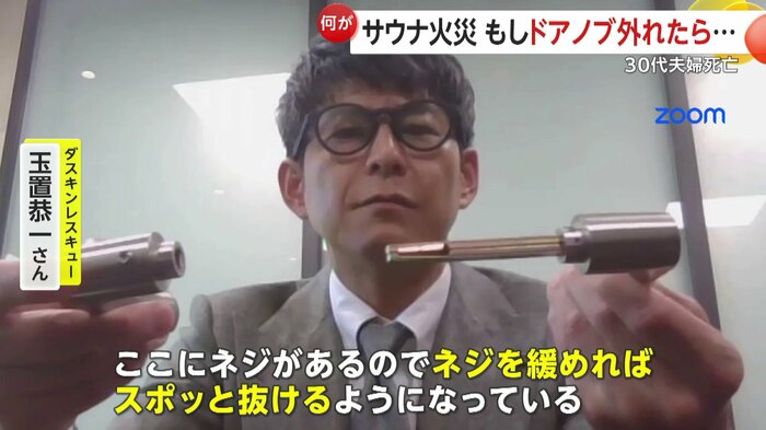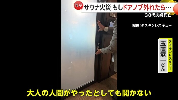 松田さん夫妻が閉じ込められたサウナでは、この2年の間に火事が起きたサウナ室とは別の部屋で、同じような作りの扉のドアノブに不具合が見つかり、修理していたことが分かった。