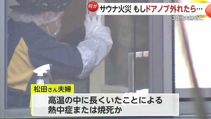 亡くなった松田さん夫婦は、サウナという高温の中に長くいたことによる熱中症か、焼死の可能性が高いとみられている。
