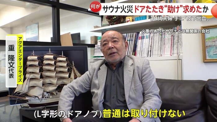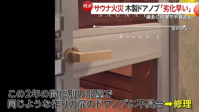 また、過去に、火事が起きたサウナ室のドアと同じような作りのドアノブに不具合が見つかり、修理をしていたこともわかった。