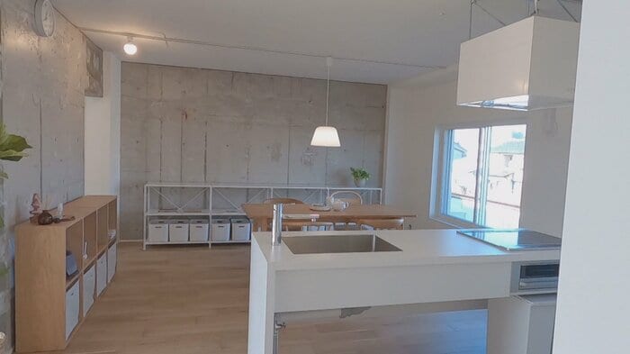家族構成の変化に合わせてゆるやかに仕切ることでひとつながりの空間を保ちながら、自由にアレンジができる点も特徴だ。さらに、ユニットを自由に組み合わせてカスタマイズできる収納の工夫もあり、生活感をなくしつつ心地よい距離感を創出している。