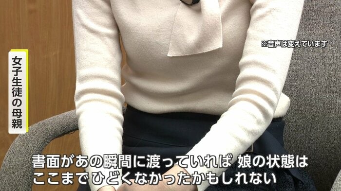 「教頭先生から『職員全員で書面を見落としていた』と電話で話された。あの瞬間に渡っていれば、今の娘の状態はここまでひどくならなかったかもしれない。状況が変わっていたんじゃないかと思ってしまう」