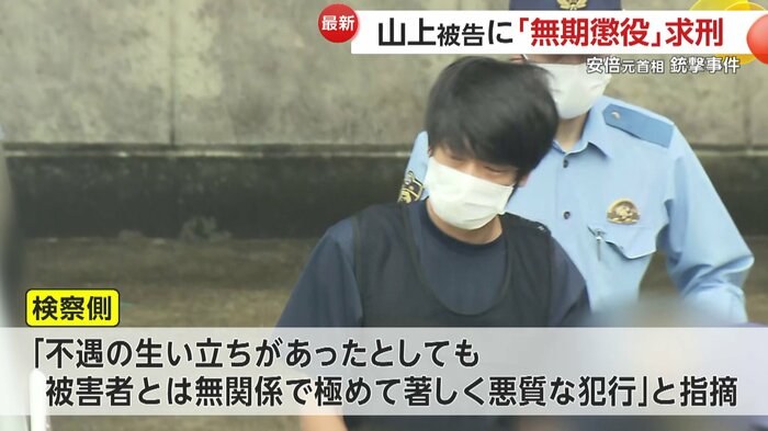 18日に行われた安倍元首相銃撃事件をめぐる裁判で検察側は、山上被告に無期懲役を求めた。