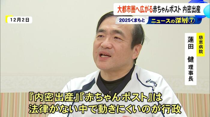 蓮田理事長は「匿名を前提としたサービスを、これまで行政はされていない。例えば生活保護もそう。法的よりどころがあれば、積極的に動けるけれども、内密出産、赤ちゃんポストは法律がない中で、動きにくいのが行政。心配している。ただ期待はしている」と述べている。