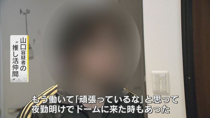 「そのお金は、もう働いてて『頑張ってるな』と思って、夜勤明けでドーム来たって時もありましたね」(山口容疑者の"推し活”仲間)。