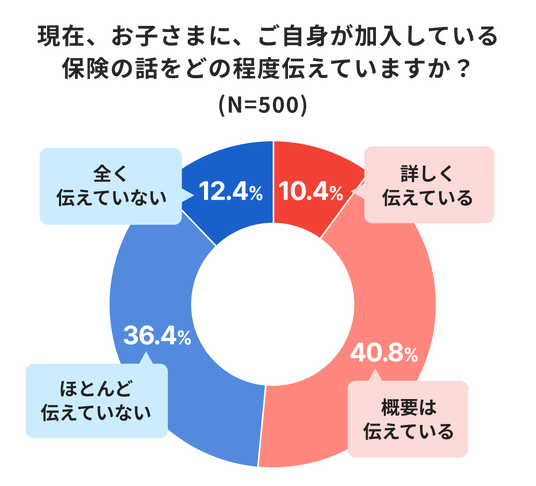 - 子どもから聞かれたら「嬉しい・きちんと話そうと思う」親は92.0%。しかし現実には48.8%が、自身の保険の内容を「伝えていない」。