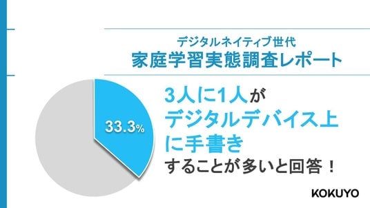 ・「デジタルデバイス上に手書きする」学習スタイルが33%。 中高生の学習シーンにおいて、タブレット等に「手書き」する層が3人に一人存在し、ノートの書き方に変化のきざしがある。