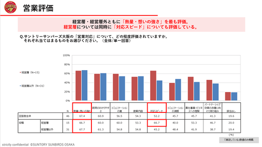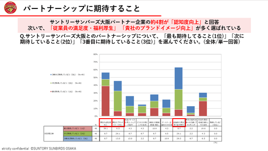 サントリーサンバーズ大阪(サントリーホールディングス(株)スポーツ事業部)は、パートナーシップの取り組みを通じて得られた成果や価値を明らかにするため、サントリーサンバーズ大阪パートナー企業の皆様に対して、満足度調査を実施いたしました。
