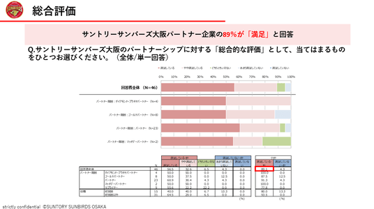 ■パートナー企業様の89%が「満足」と回答、 サントリーサンバーズ大阪のパートナーシップ