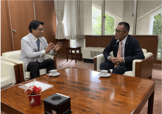 この理念に共鳴いただいた特派員である須藤和臣氏(元館林市長)のご紹介により、住民起点の行政経営を実践する第一人者、群馬県大泉町の村山俊明町長に取材の機会をいただきました。