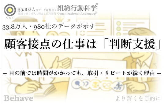 タイトル:顧客接点の仕事は「判断支援」― 目の前では時間がかかっても、取引・リピートが続く理由 ―
