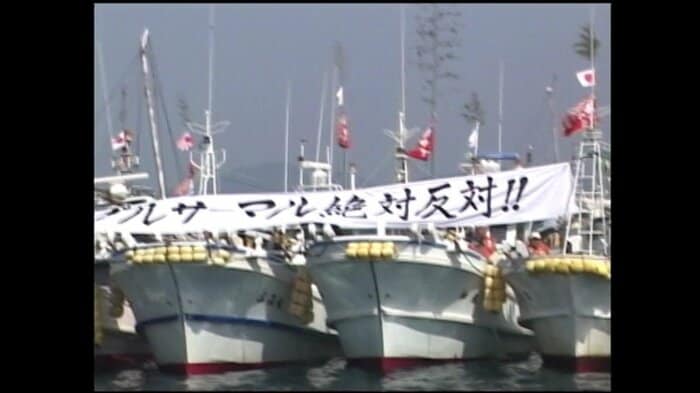 MOX燃料が船で運び込まれるのを前に、プルサーマルに反対する人たちが船上から激しい抗議行動を展開した。