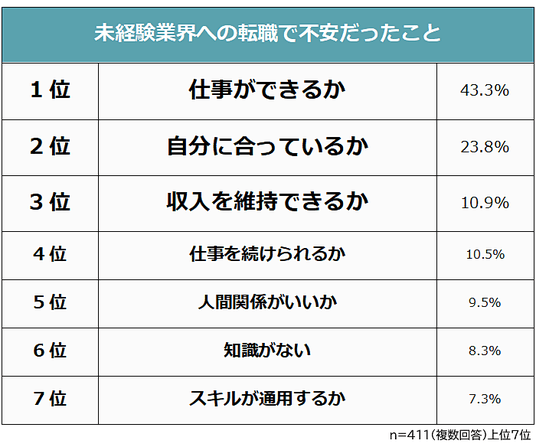 未経験業界への転職で不安だったことは「仕事ができるか」