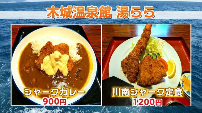このほかにも、川南町で水揚げされたサメを味わえる店舗は県内で徐々に増えている。木城町の「木城温泉館 湯らら」ではシャークカレー(900円)と川南シャーク定食(1,200円)を提供している。