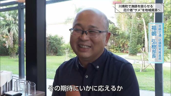 2025年10月、町と漁協、直売所の4人が県内屈指の観光地・青島にある「AOSHIMAYA」を訪れた。サメのフライを扱ってもらえることになったのだ。宮崎交通店舗開発推進部の福嶋弘樹部長は、当初は疑心暗鬼だったものの、「食べたらおいしい、クセがない。オリーブオイルやバジルソースなど、様々な楽しみ方ができるかな」と話す。
