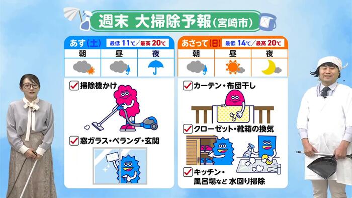 テレビ宮崎の夕方ニュース「#Link」でお天気コーナーを担当している気象予報士・古山圭子さんが天気の豆知識を解説するコーナー。今回は、「雨の日の掃除」をテーマにお伝えします。