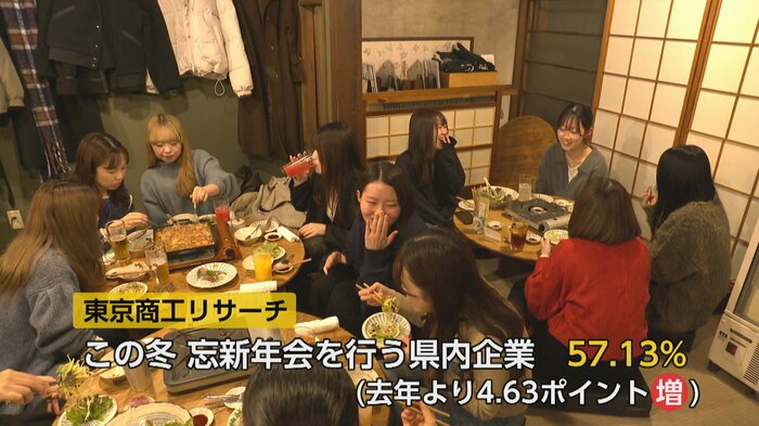 民間の信用調査会社の調べによると、この冬、忘新年会を行う県内企業は57.13%と昨年より増加している。