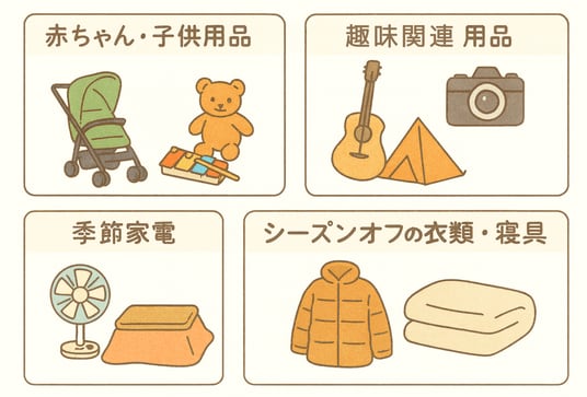1. 季節用品・趣味用品・子育て用品の置き場不足