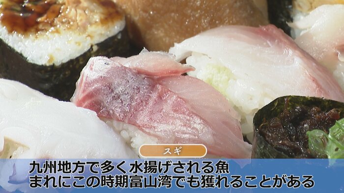 おすすめのネタとして浅井店主が挙げるのは「スギ」。年に1、2回しか獲れない希少な魚だ。程よい噛み応えと柔らかさで、脂も乗っていた。富山湾で獲れたイサキも旨みたっぷりで絶品だ。