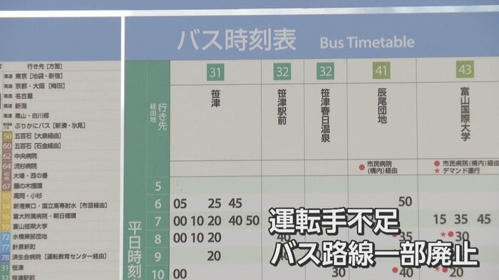 人手不足の影響が生活にも。10月、富地方鉄道は運転手不足を理由に17の路線でバスの運行を廃止しました。