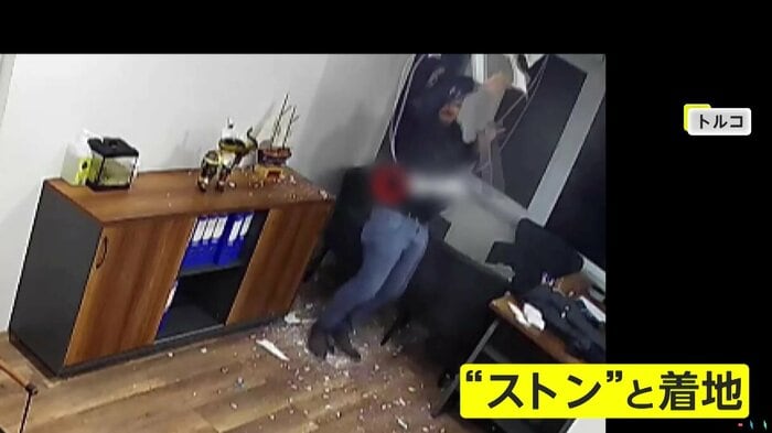 トルコの改装中のオフィスで、2階にいた男性が天井を突き破って落下する事故が起きた。奇跡的に大きなケガもなく「ストン」と着地する様子が映し出され「みんな大爆笑だった」という。